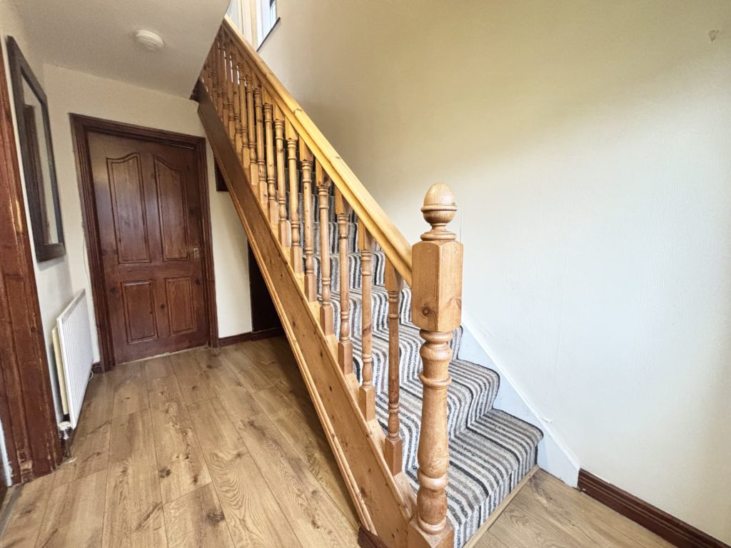 Entrance Hall with laminate wooden flooring. Carpet laid to stairs.