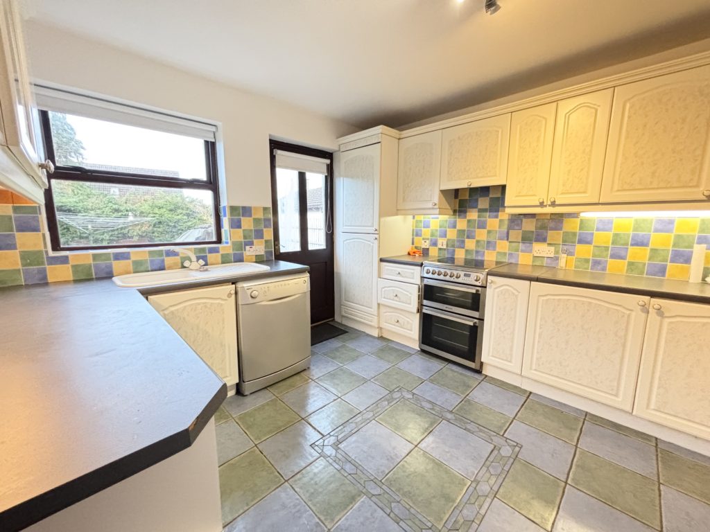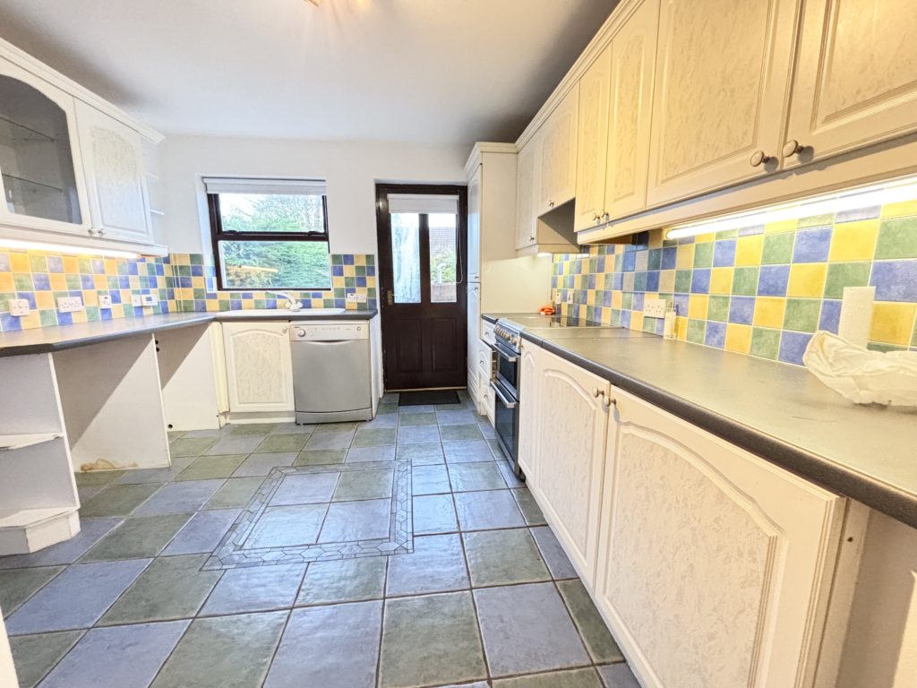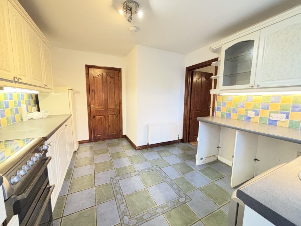 Kitchen 4.30m x 3.40m (14‘1” X 11‘2”) :- Range of eye and low level units. Space for fridge and freezer. Plumbed for washing machine. Tiled flooring.