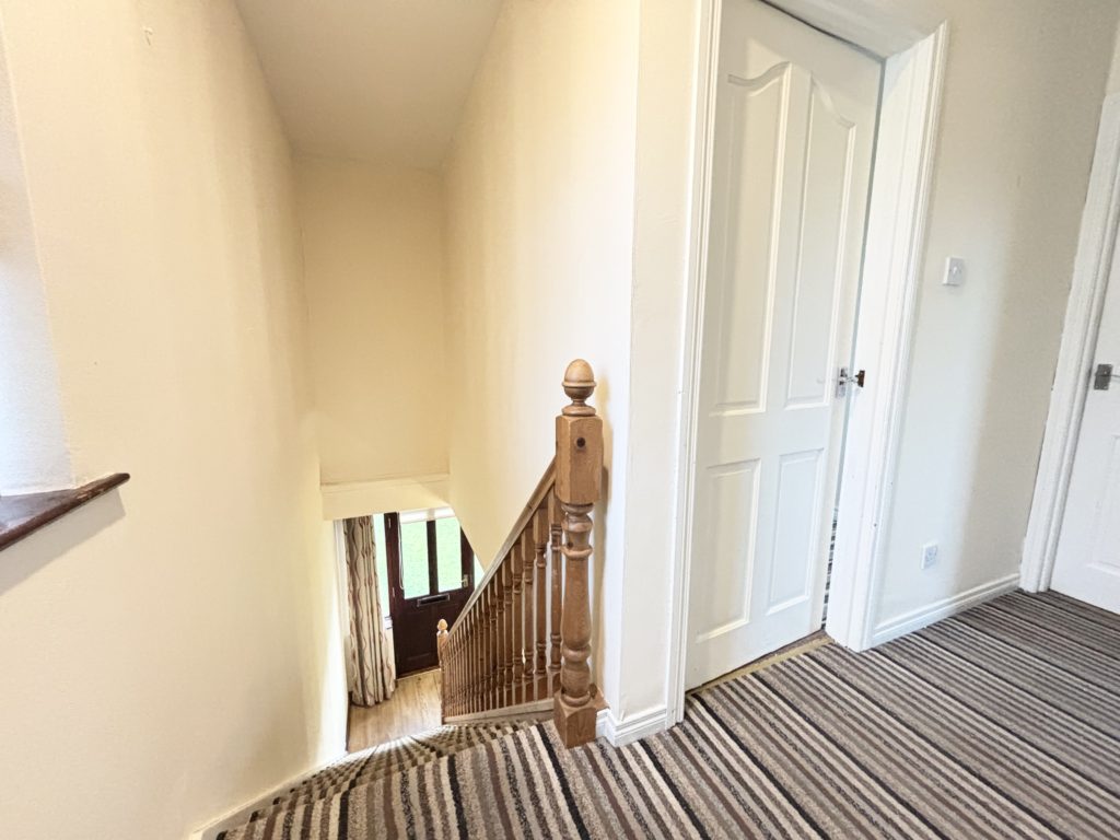 Landing :- Carpet laid. Hotpress off with shelved storage.