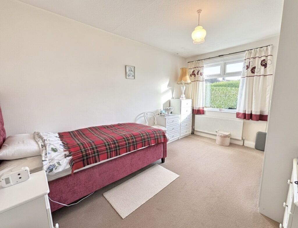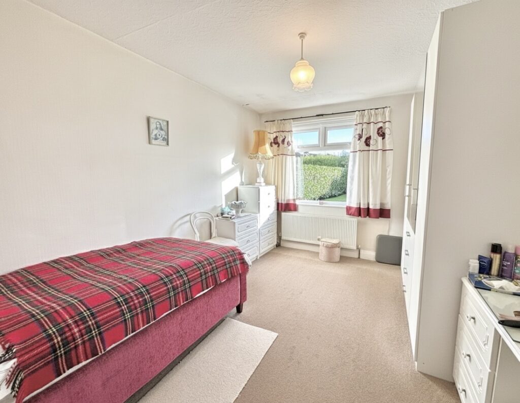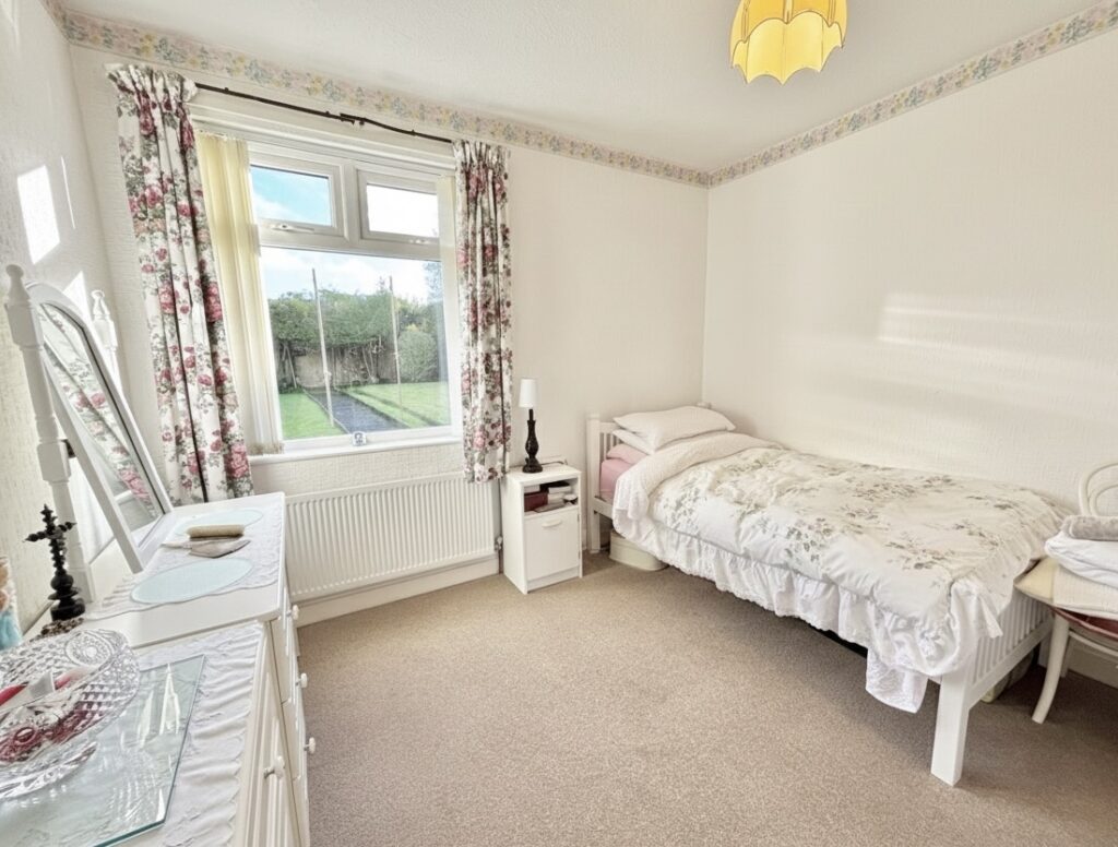 Bedroom 2 3.18m x 3m (10’5″ x 9’10”) :- Built in storage cupboard. Carpet laid. Aspect to rear.