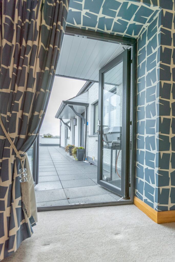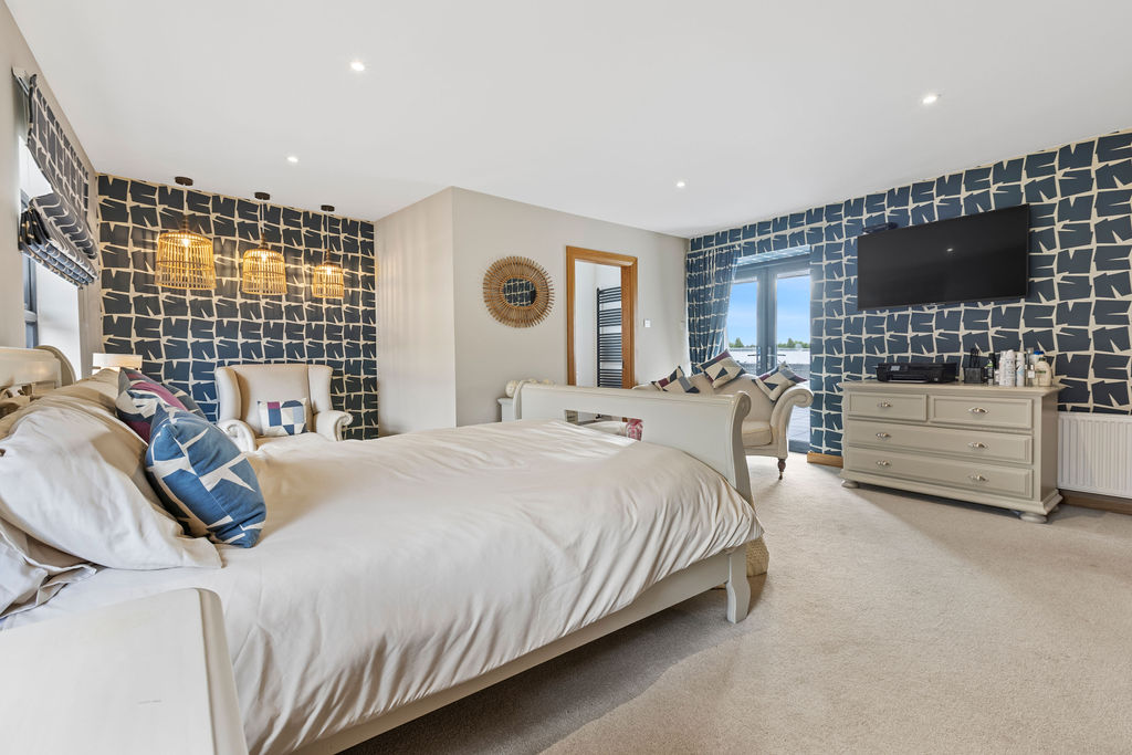Master Bedroom 5.36m x 5.36m (17’7” x 17’7”) :- Spotlights. Double patio doors to walk around balcony.