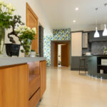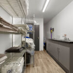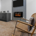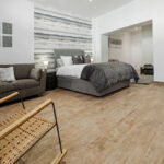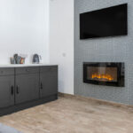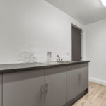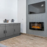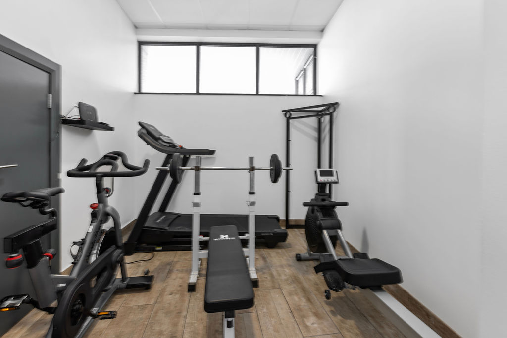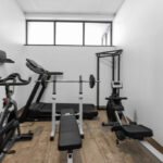 Gym Area :- Wooden effect tiled flooring and upstands.