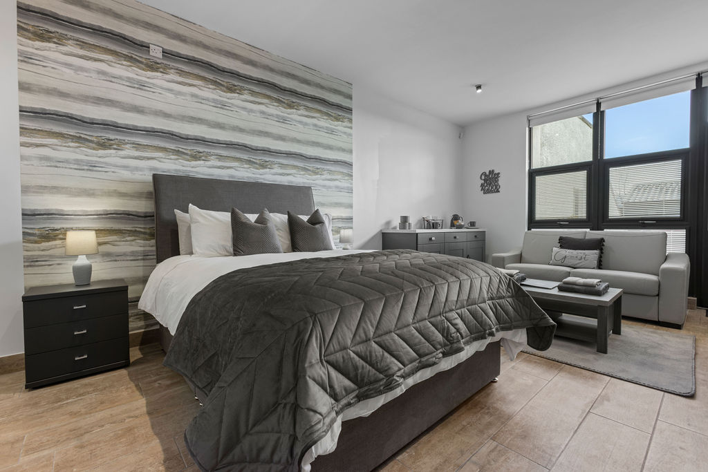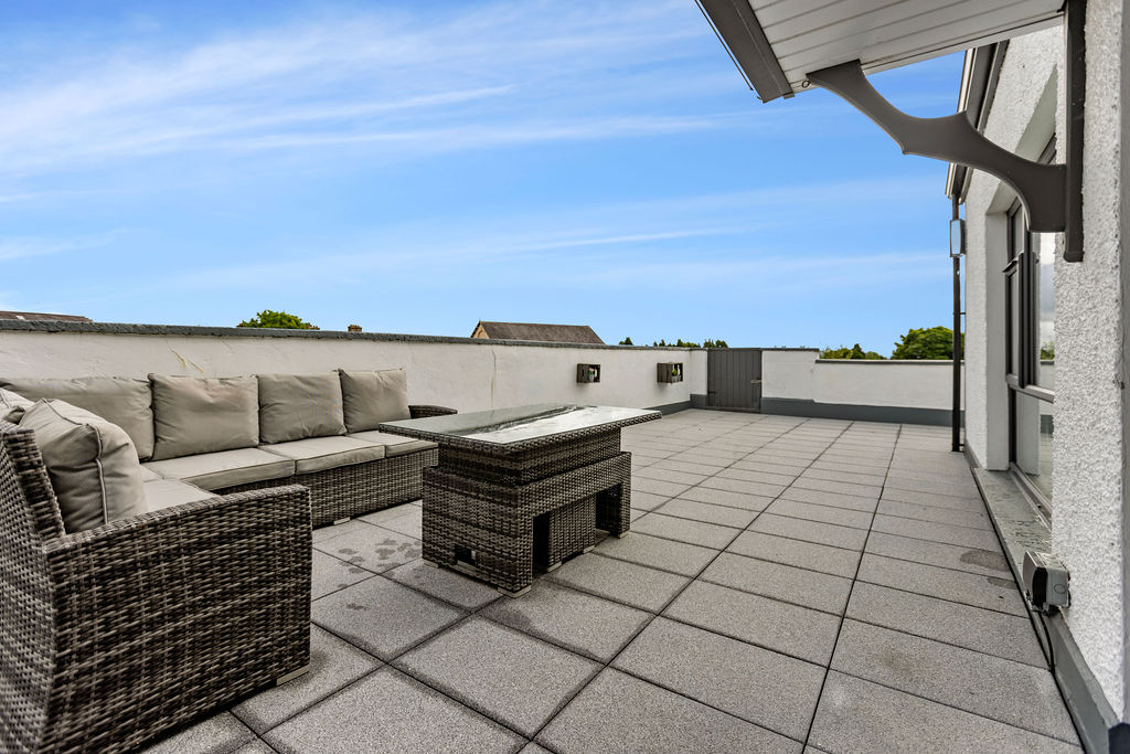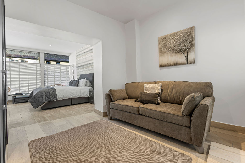 The ground level includes four luxury units with living space, kitchen area and en-suite facilities, with a gym and laundry for communal usage, and covers roughly 1900 square feet. Accessed separately but also benefiting from an integral doorway between the four units, the first floor consists of a 1700 square foot apartment which opens onto the rooftop terrace. Perfect as high end living space for the owner occupier or corporate client, the first floor could also be adapted to provide an additional two units with en-suites.