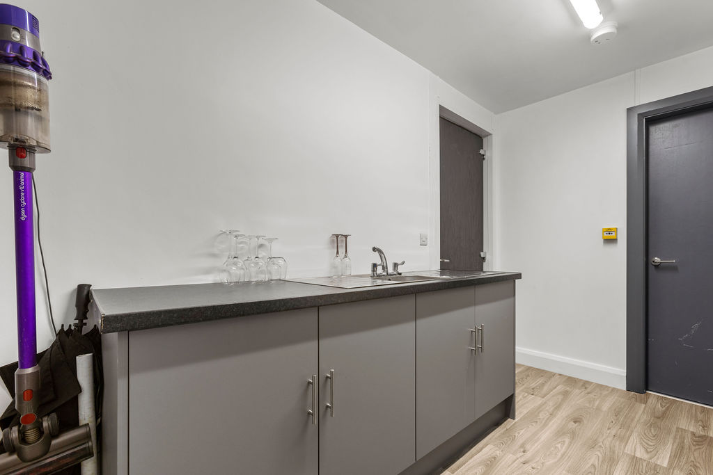 Laundry Room :- Includes range of units and stainless steel sink. Wooden effect tiled flooring and up-stands.