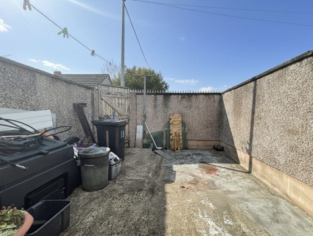 Rear :- Low maintenance enclosed and private split level concrete courtyard with steps leading to terrace style area perfect for outdoor entertaining.