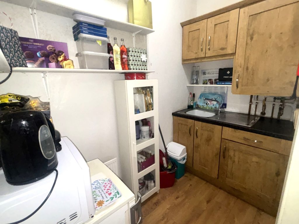 Reception Area 5.24m x 3.81m (17’2″ x 12’6″) :- Laminate wooden flooring. Aspect to front. Privacy screening on window.