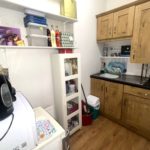 Kitchen 2.46m x 1.35m (8’1″ x 4’5″) :- Includes range of eye and low level units. Stainless steel sink unit. Granite effect worktops. Laminate wooden flooring.
