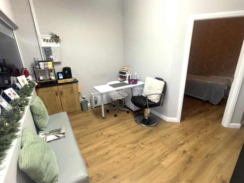 Treatment room 2 3.68m x 1.83m (12’1″ x 6’0″) :- Laminate wooden flooring.