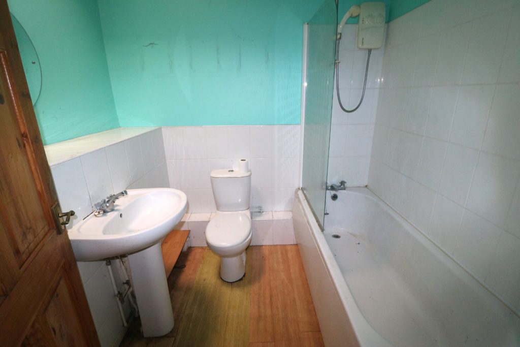 Bathroom 2.31m x 2.09m (7’7’’ x 6’10’’) :- Includes white three piece suite comprising lfwc, whb and bath. Fully tiled to bath, half tiled to rest.