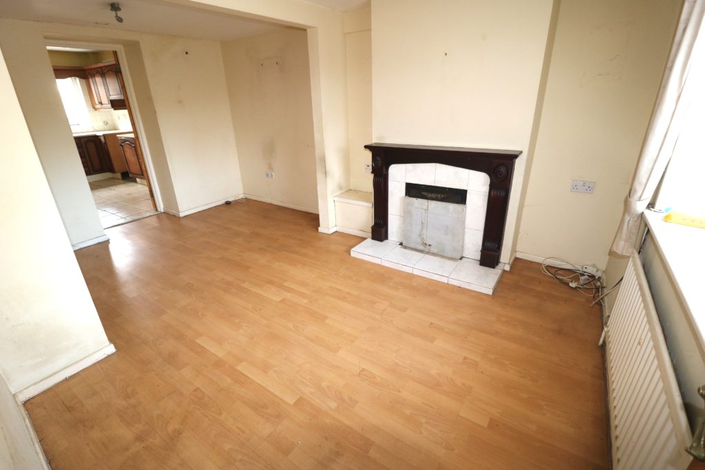 Lounge 4.55m x 3.07m (14’11’’ x 10’1’’) :- Includes Mahogany Adam style with tiled inset and hearth. Laminate wooden flooring. Storage to under stairs.