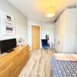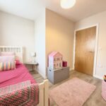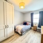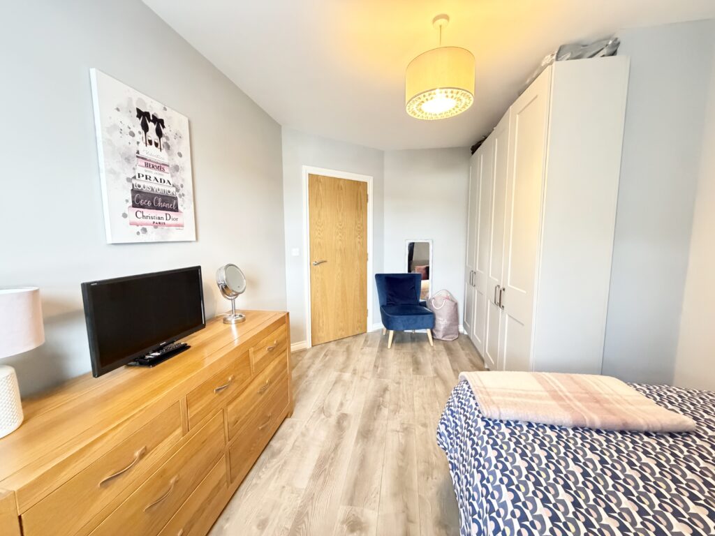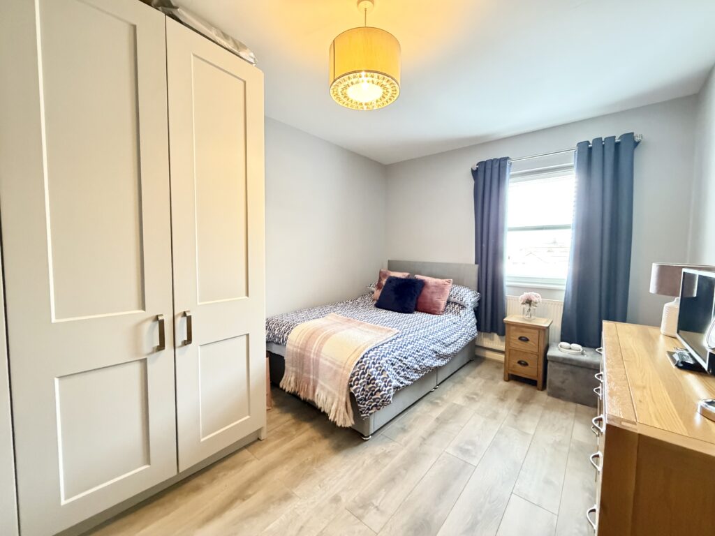 Bedroom 2 4.47m x 2.87m (14’8″ x 9‘5″) :- Grey laminate wooden flooring. Fitted ‘four door’ wardrobes in grey.