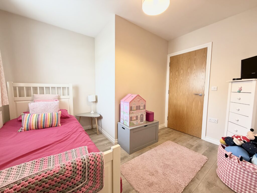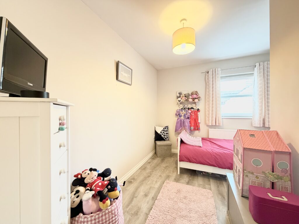 Bedroom 3 3.38m x 3.00m (11’1” x 9’10”) :- Grey laminate wooden flooring.