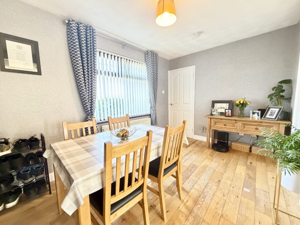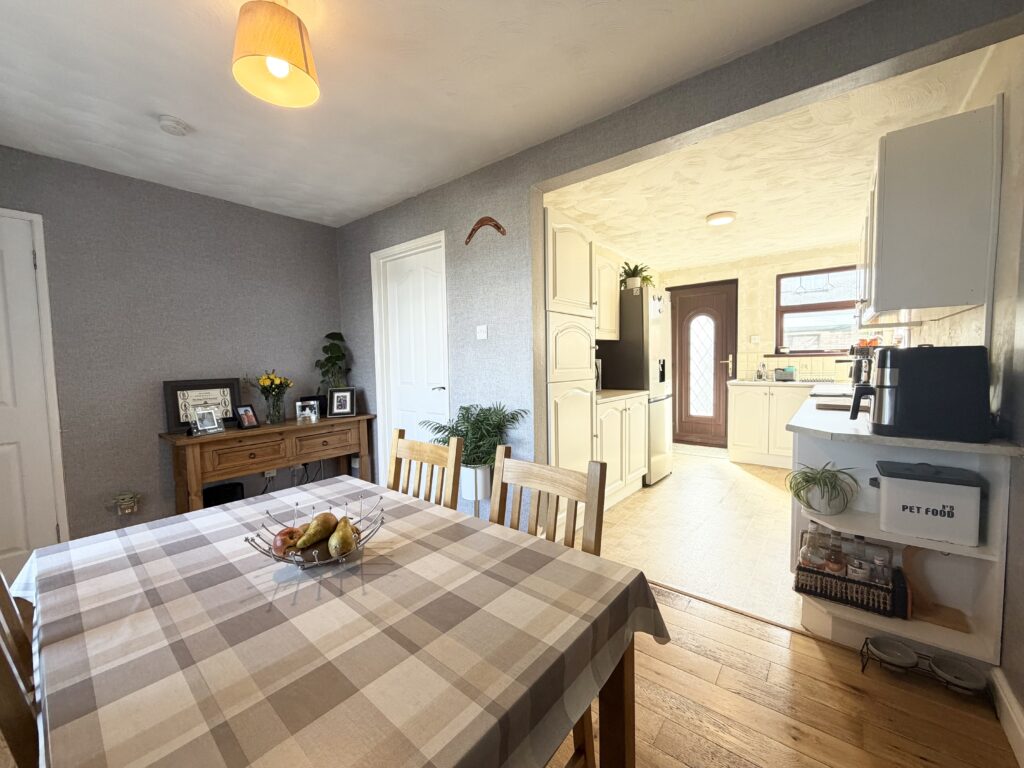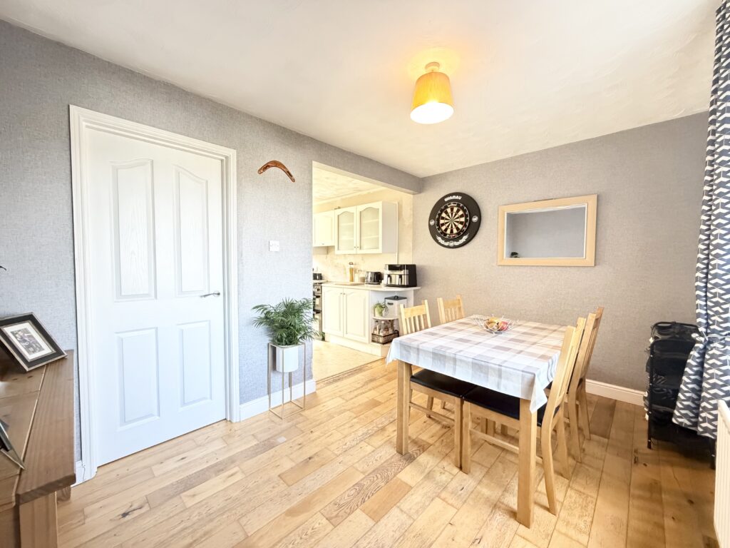 Dining Room 4.1m x 2.7m (13‘5” x 8‘10”) :- Laminate wooden flooring. Open to kitchen.