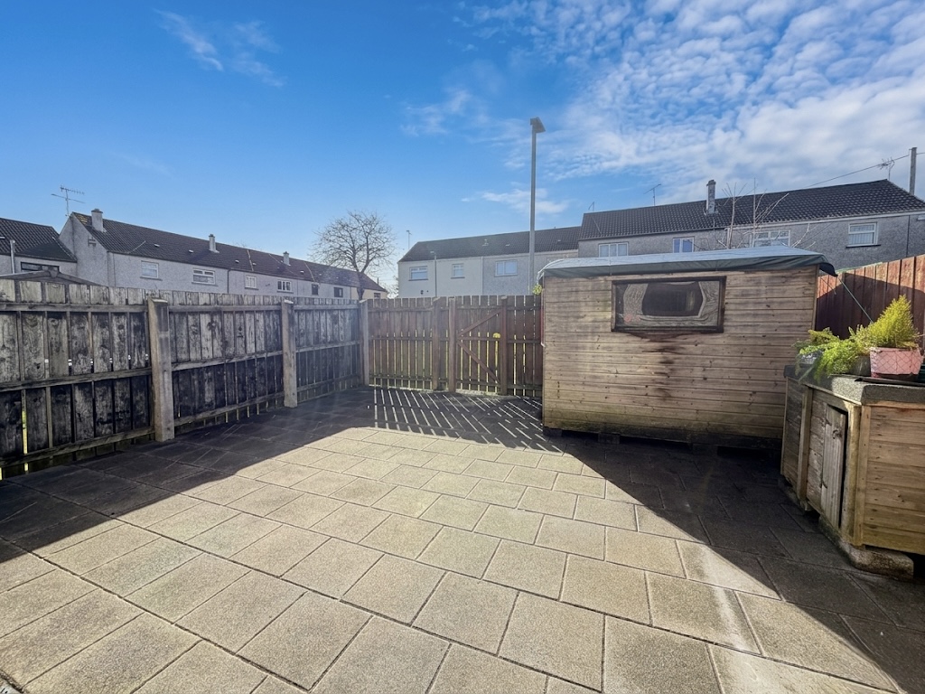 Rear :- Fully enclosed. Flagged patio area perfect for outdoor entertaining. Storage shed.