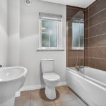 Bathroom 2.36m x 2.34m (7’9’’ x 7’8’’) :- Includes white suite comprising lfwc, whb and bath. Shower over bath with glass screen. Tiled flooring. Tiled to bath. Tiled to whb.