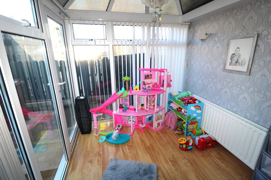 Conservatory 2.42m x 2.28m ( 7’11” x 7’6”) :- Laminate wooden flooring.