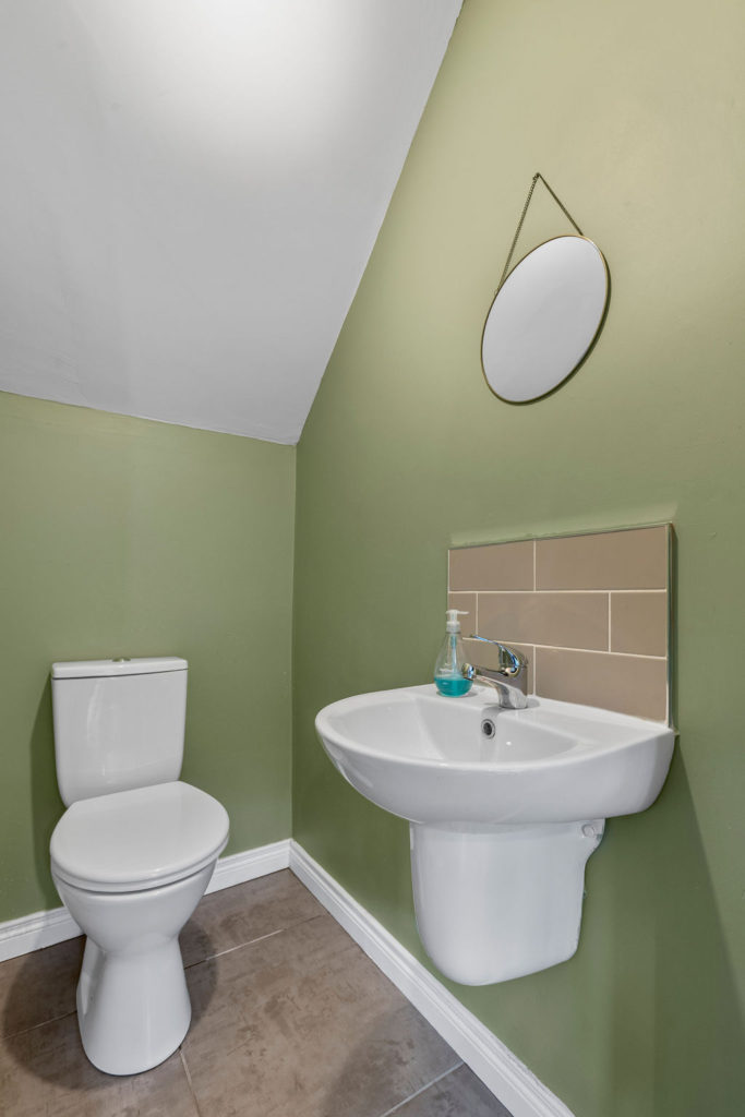 Downstairs Toilet 1.6m x 1.1m (5‘2” x 3‘6”) :- White lfwc and whb. Contemporary tiled floor.