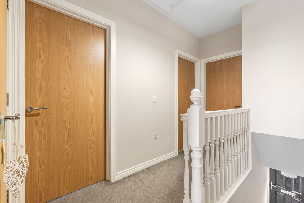 Landing 3.3m x 2.2m (10’11” x 7’1”) :- Balustrade style staircase with matching handrail. Carpet laid to stairs and landing. Storage cupboard off.