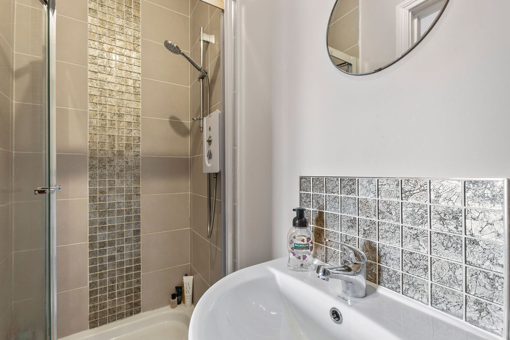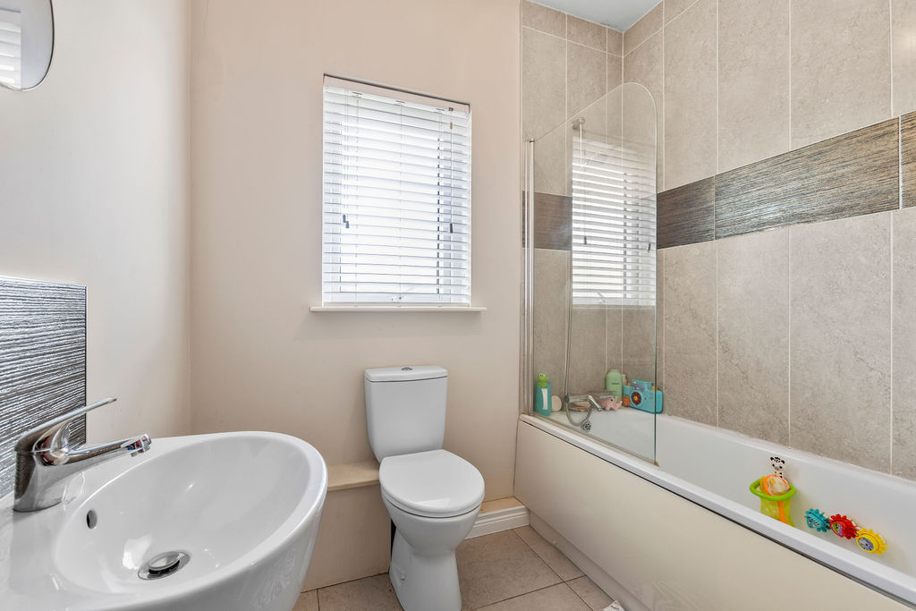 Bathroom 2.5m x 2.2m (8’1” x 7’1”) :- White three piece suite comprising lfwc, whb and bath with shower above and screen. Tiled to bath and shower. Splash back tiling to whb. Tiled floor.