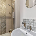 Ensuite 2.54m x 1.1m (8’4” x 3’8”) :-  White lfwc, whb and walk in shower cubicle. Tiled to shower. Splash back tiling to whb. Tiled flooring.
