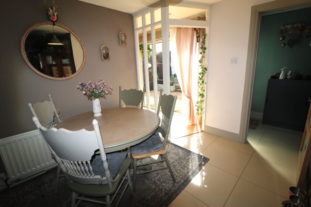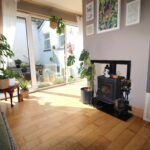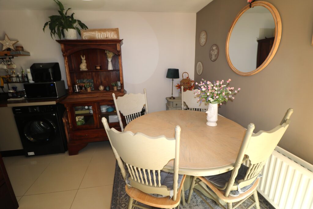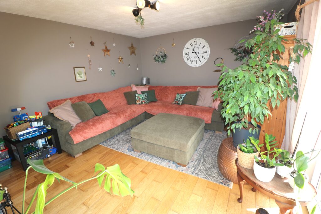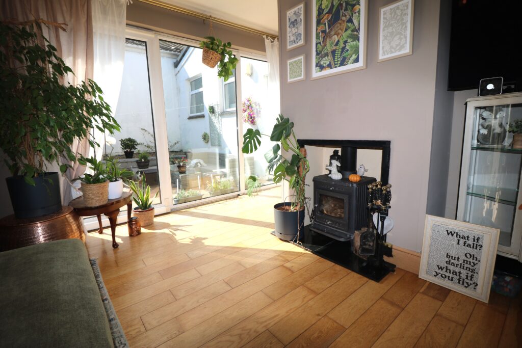 Lounge 5.76m x 3.89m (18’11″ x 12’9″) :- Wood burning stove unit. Laminate wooden flooring. Sliding uPVC doors to rear.