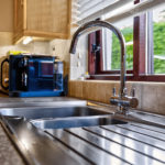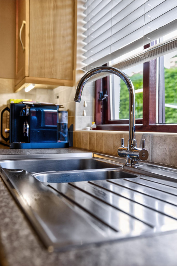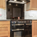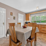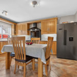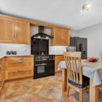 Kitchen & Dining Area 4.6m x 3.4m (15’1” x 11’2”) :- Range of eye and low level solid wooden units with space for ‘Rangemaster’ style cooker. One and a quarter bowl stainless steel sink unit and drainer. Tiled flooring. Space for fridge and freezer. Recently installed extractor fan in black. Contemporary splash back tiling to kitchen. Space for family dining.