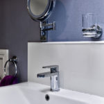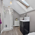 Bathroom 2.9m x 2.0m (9’4” x 6’8”) :- Recently installed contemporary suite comprising lfwc, vanity whb and quadrant corner shower cubicle. Grey smoked oak effect LVT. Velux window.