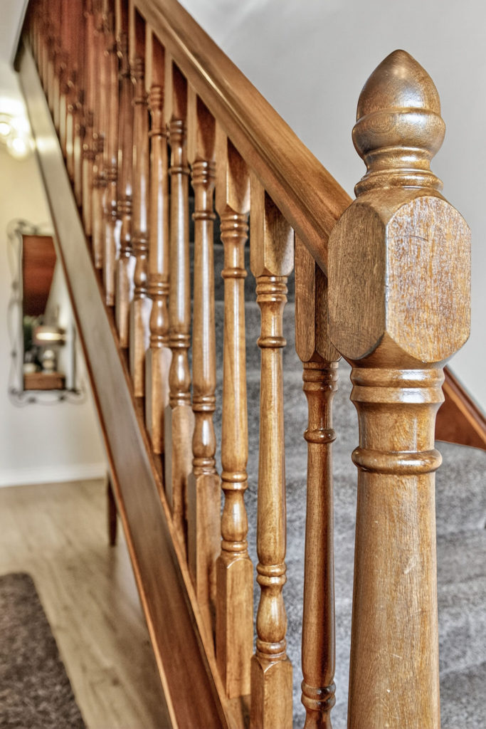 Hallway 6.2m x 1.85m (20’5” x 6’1”) :- Laminate wooden flooring. Solid wooden handrail to stairs. Storage cupboard off.