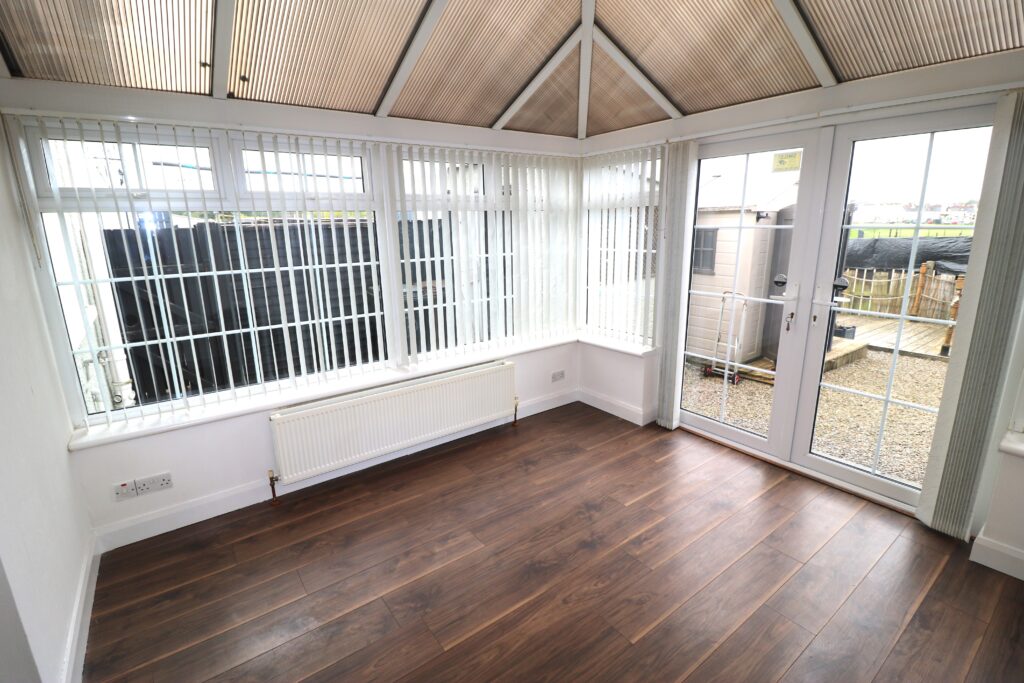 Dining area 2.57m x 1.96m (8’5” x 6’5”) :- Laminate wooden flooring. Double uPVC doors to Conservatory.