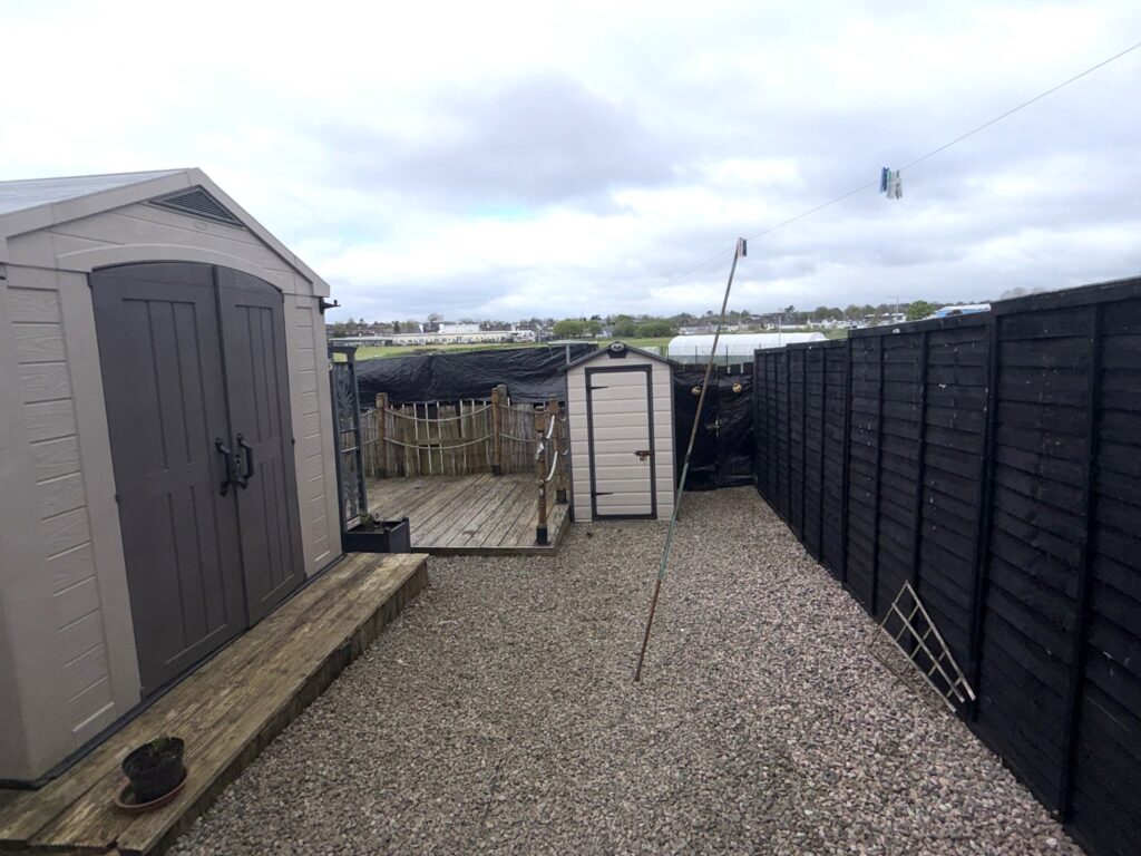 Fully enclosed to the rear and offering an excellent level of privacy, the wash house is plumbed for a washing machine, and there are two additional storage sheds and decking area.