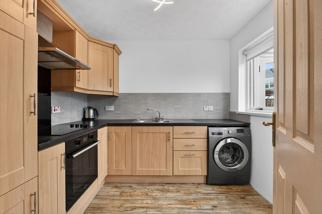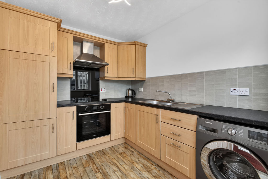 Kitchen 2.81m x 2.38m (9’3’’ x 7’10’’) :- Includes range of eye and low level Shaker style units. One and a quarter bowl stainless steel sink unit. Granite effect worktops. Panelled splash back. Built in hob and oven. Glass splash back. Stainless steel extractor fan. Integrated fridge/freezer.