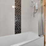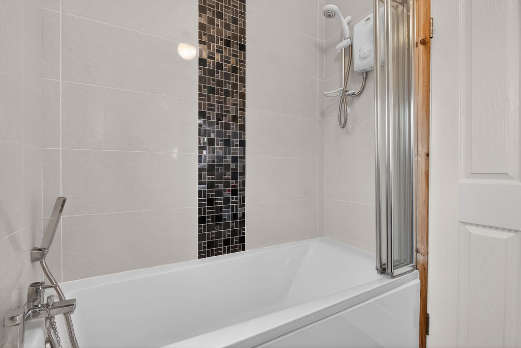 Bathroom 2.16m x 1.67m (6’10’’ x 5’6’’) :- Refitted suite includes white lfwc, whb and bath. Electric shower over bath. Chrome accessories. Fully tiled walls and flooring.