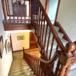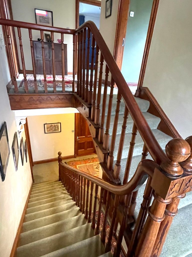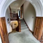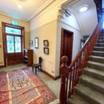 HALLWAY :- Italian ceiling cornicing and picture rail. Mahogany balustrade staircase. Access to old waiting area in extension and to courtyard. Original tiled flooring to rear hallway.