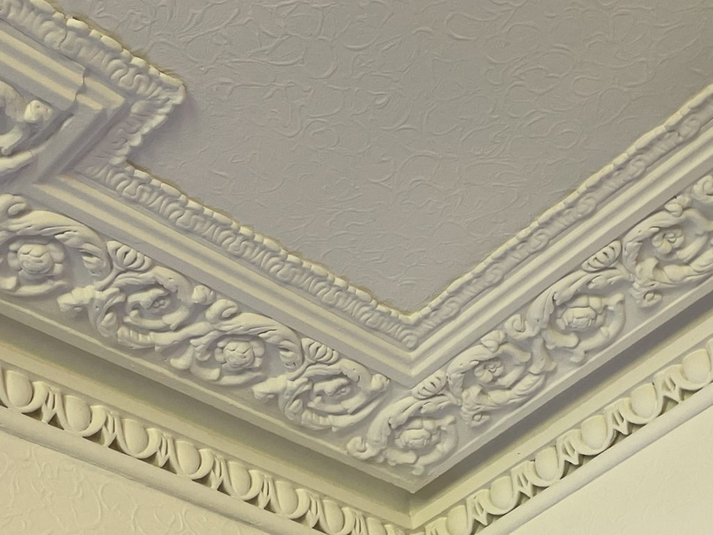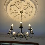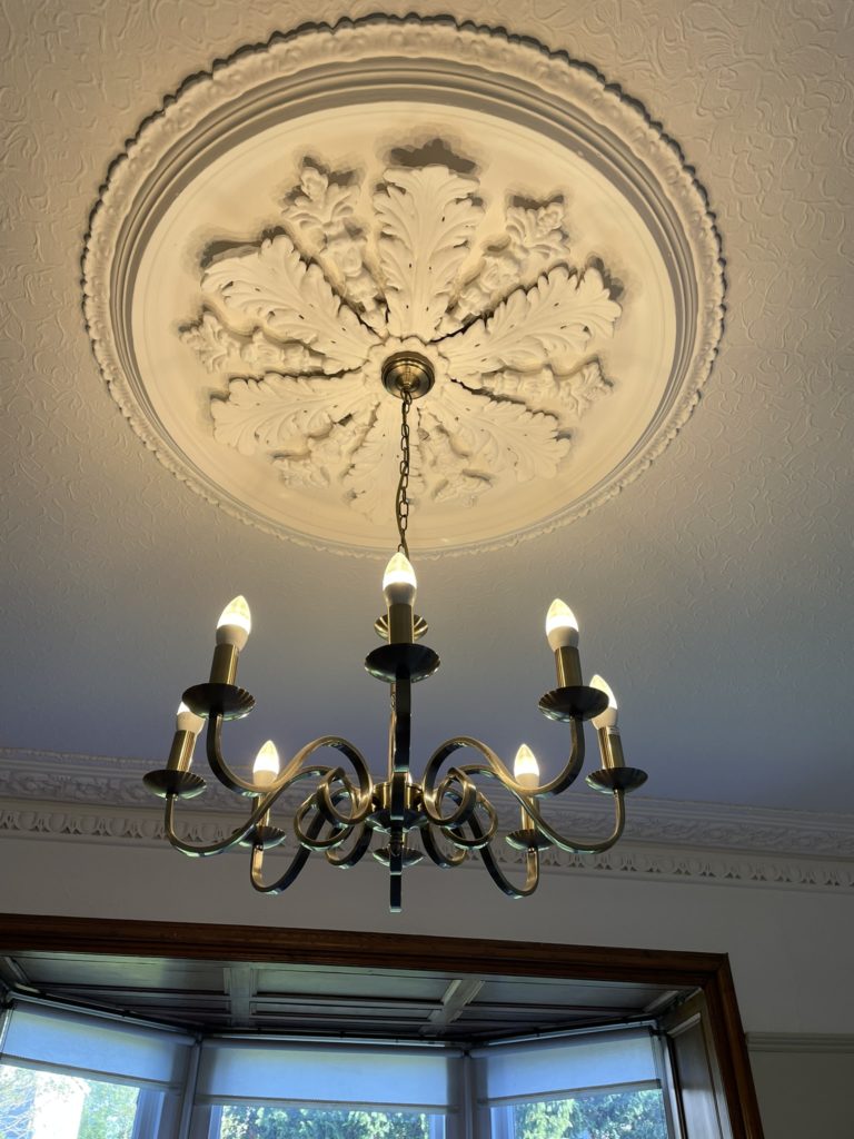 DINING ROOM 5.44m x 3.95m ( 17’10” x 13’0”) :- Cast iron with decorative tiled cast iron inset and ornate tiled hearth. Plumbed for coal effect gas fire. Italian ceiling cornicing and picture rail.