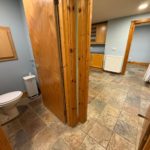 DOWNSTAIRS TOILET 1.47m x 1.26m (4’10” x 4′ 2″) :- Includes white lfwc and whb. Chinese slate tiled flooring.