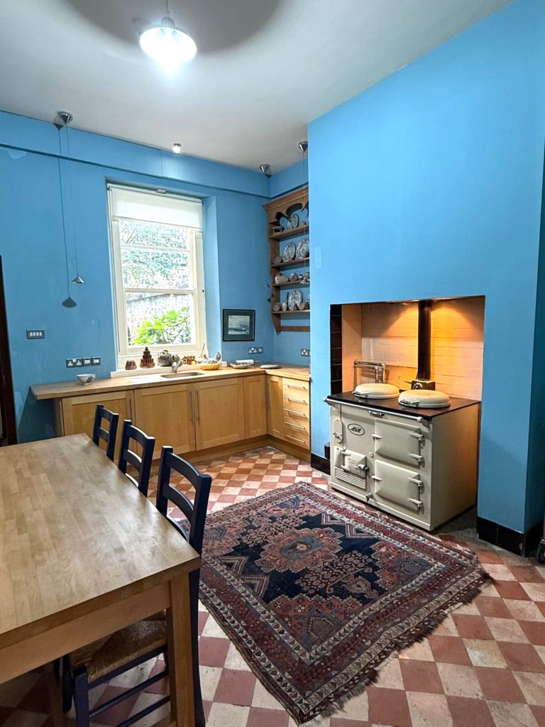 KITCHEN 4.48m x 3.95m (14′ 8″ x 13′ 0″) :- Includes range of low level units. Wooden worktops with sunken sink unit. Aga cooker. Victorian tiled flooring.