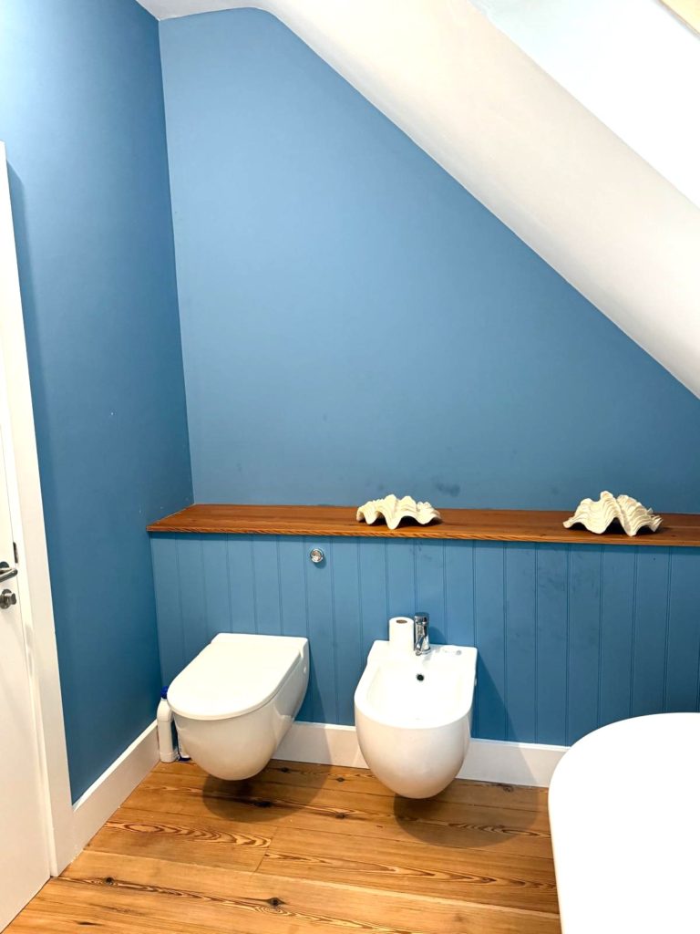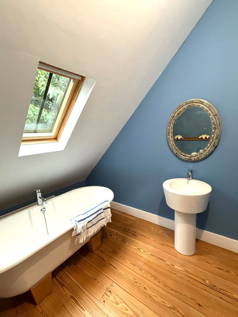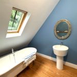 BATHROOM 3.13m x 2.82m (10’3” x 9’3”) :-Includes four piece suite comprising lfwc, whb, bidet and free standing roll top bath. Chrome accessories. Reclaimed wooden flooring.