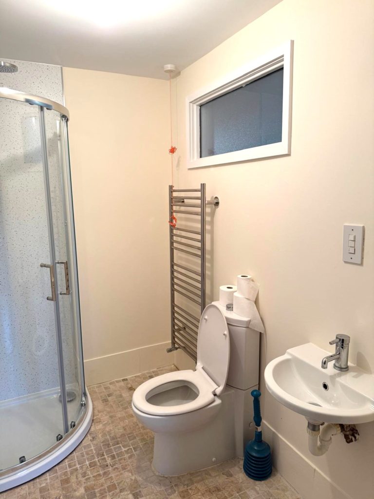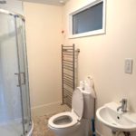 EN-SUITE 2.22m x 1.58m (7’3” x 5’2”) :- Includes white lfwc and vanity whb. Panelled quadrant shower cubicle with Rain head and separate attachment. Tiled flooring.