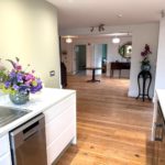KITCHEN :- Newly fitted with range of soft close low level units in white matt finish. One and a quarter bowl stainless steel sink unit. Quartz effect worktops and up-stands. Hi-Sense fridge and freezer and dishwasher. Built in hob and oven. Spotlights. Reclaimed wooden flooring.