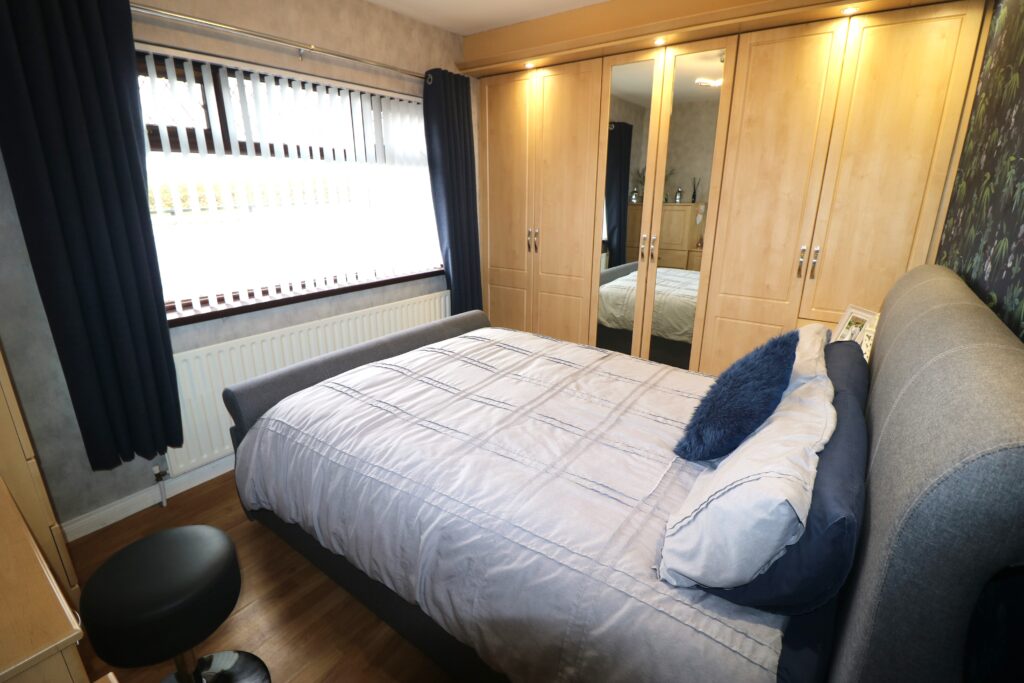 Bedroom 2 3.52m x 2.88m (11’6’’ x 9’5’’) :- Fitted bedroom furniture with spotlights. Laminate wooden flooring.