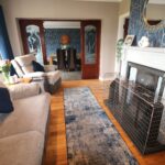 Living room 4.55m x 3.37m (14’11’’ x 11’1’’) :- Adam style fireplace with decorative tiled inset and slate tiled hearth. Wooden flooring. Spotlights. French glass doors to Dining room.